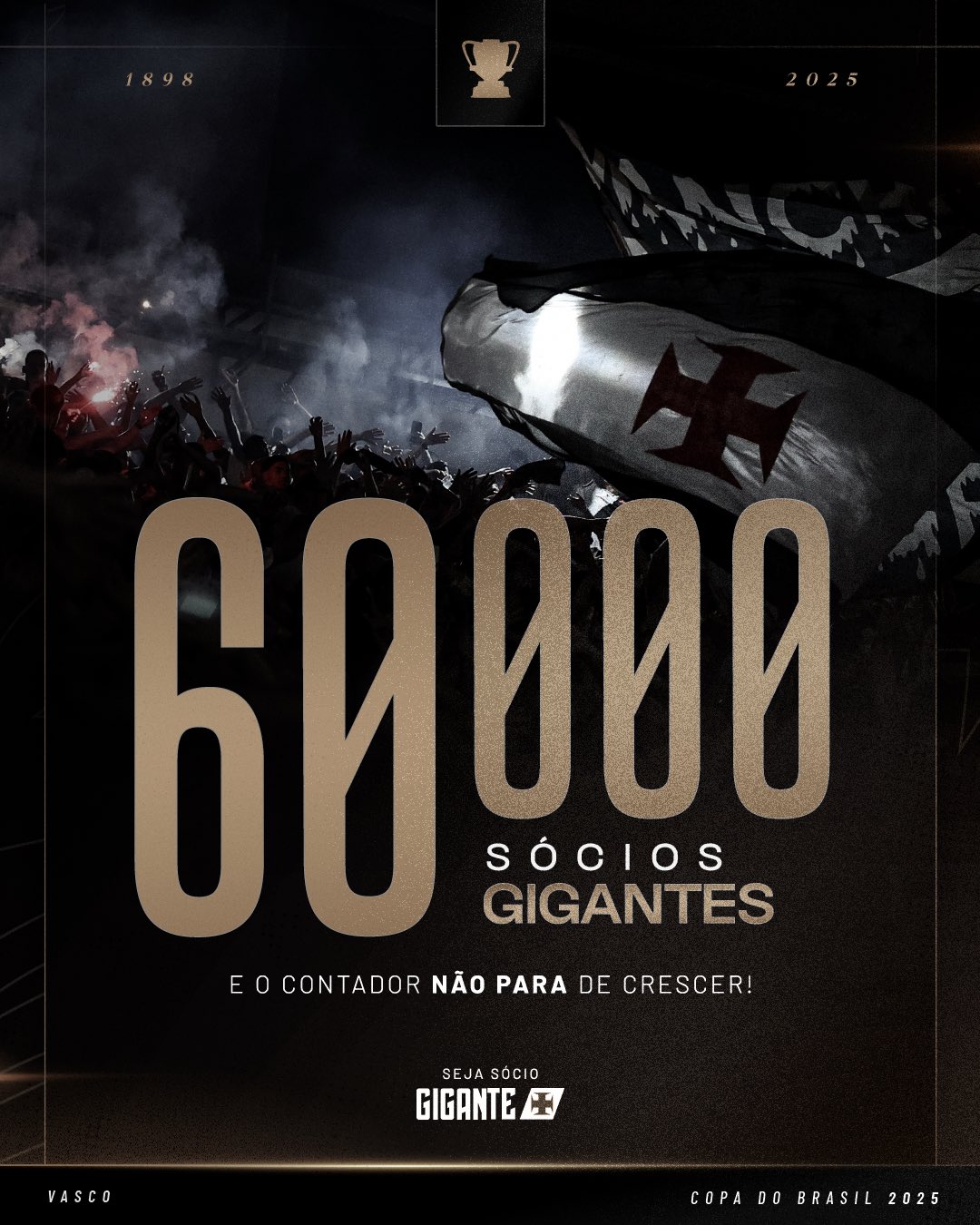 Vasco comemora marca de sócios: 'E vamos por muito mais'