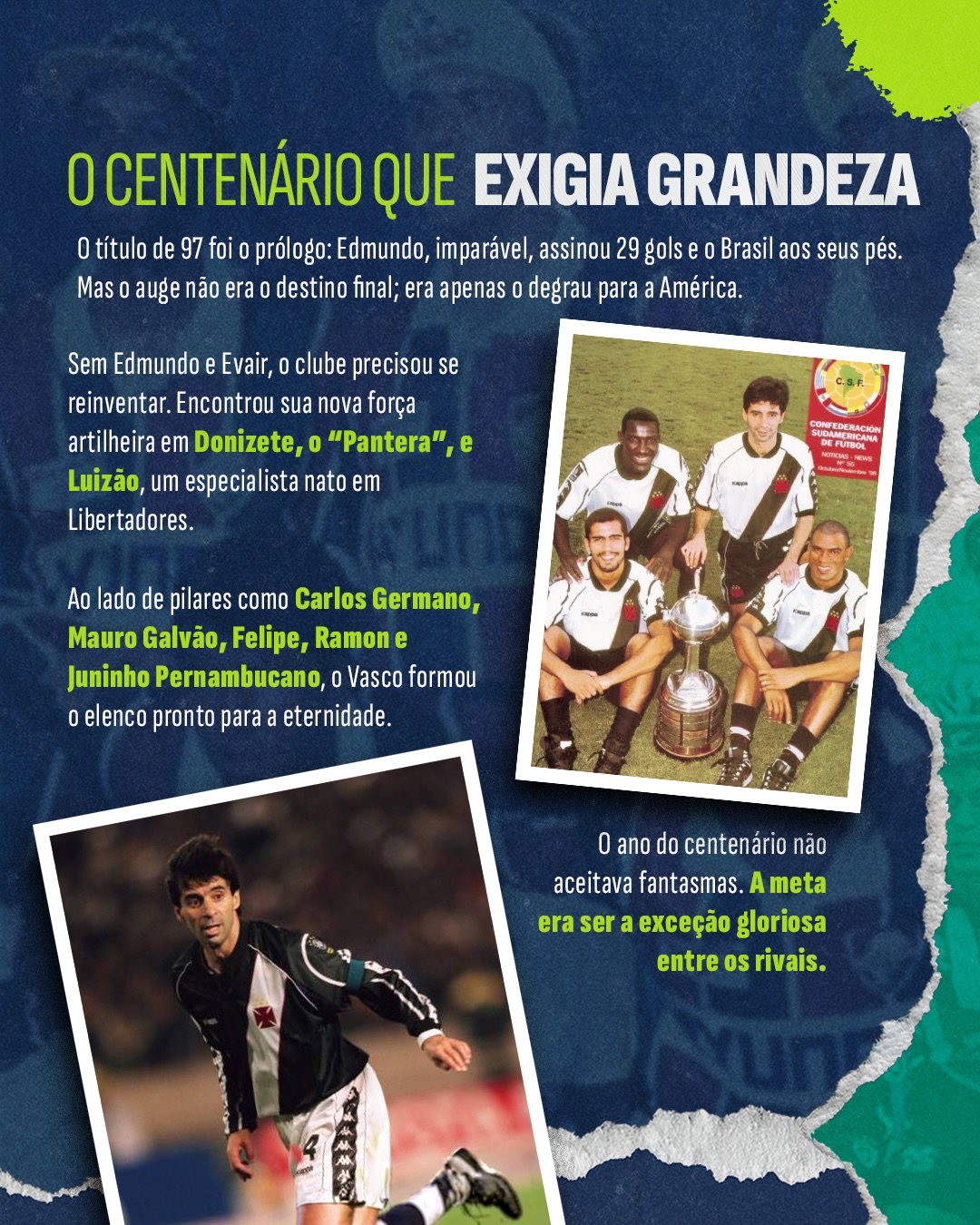 Agora, Carlos Germano, Luizinho Quintanilha, Mauro Galvão, Sorato e Donizete sobem ao palco, com a participação especial do vascaíno Fábio Porchat, para reviver bastidores, decisões e a mentalidade de um time que transformou um centenário em eternidade.