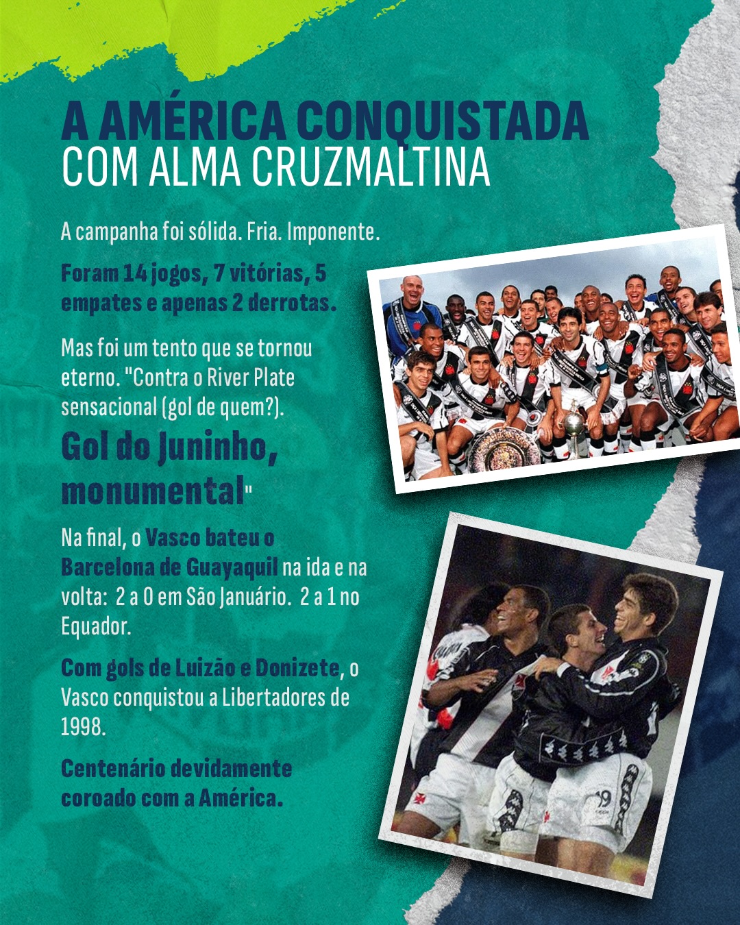 A campanha seguiu sólida até a decisão contra o Barcelona de Guayaquil. Vitória em São Januário. Vitória no Equador. A América conquistada.