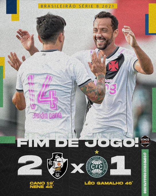 FIM DE JOGO! Com gols de Germán Cano e Nenê, Vasco vence o Coritiba em São Januário e diminui a vantagem para o G-4. Estamos vivos na briga pelo acesso nesta reta final de Campeonato Brasileiro.