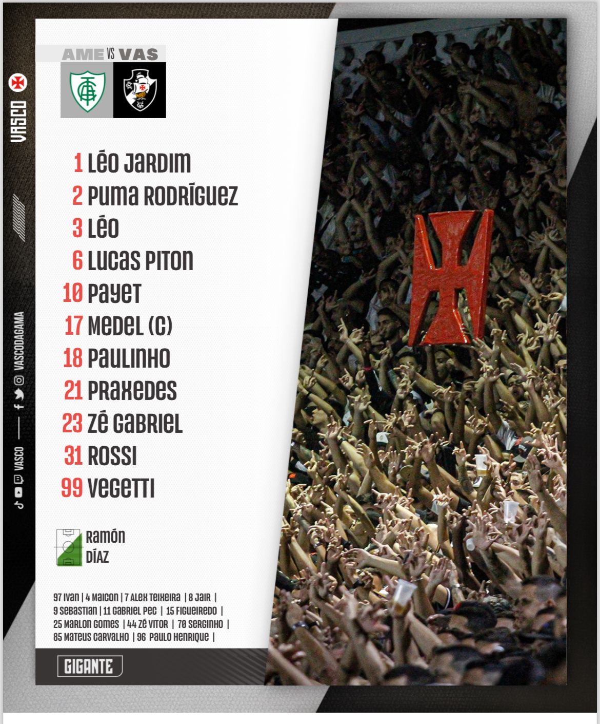Confira agora a escalação do 𝕍𝕒𝕤𝕔𝕠 𝕕𝕒 𝔾𝕒𝕞𝕒 no formato tradicional 💢