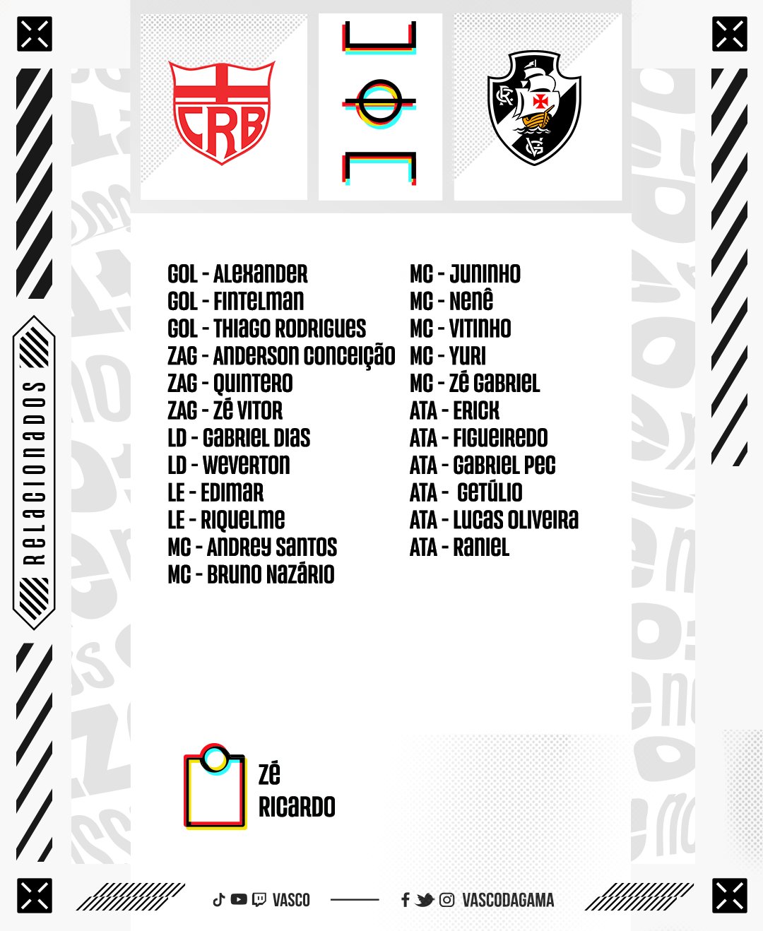 Vasco divulga a lista de relacionados para o jogo contra o CRB
