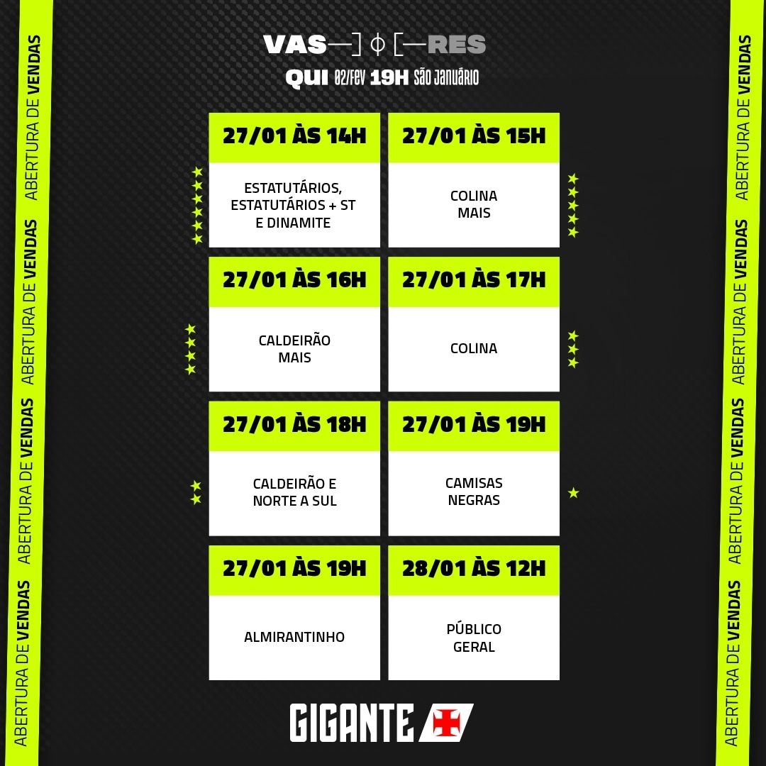 Fique ligado para a abertura das vendas para Vasco x Resende.