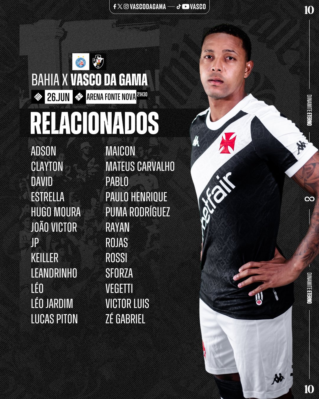 Vasco divulga lista de relacionados com novidades para enfrentar o Bahia