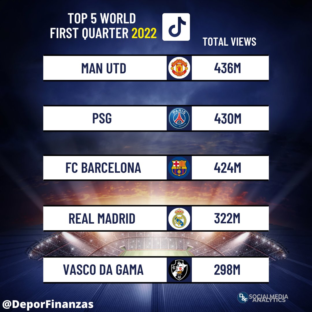 📲💥⚽ TOP 5 most popular football clubs in the world ranked by total views on #TikTok during the first quarter of 2022!