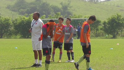 Técnico Adriano Barreto orienta jogadores no treinamento