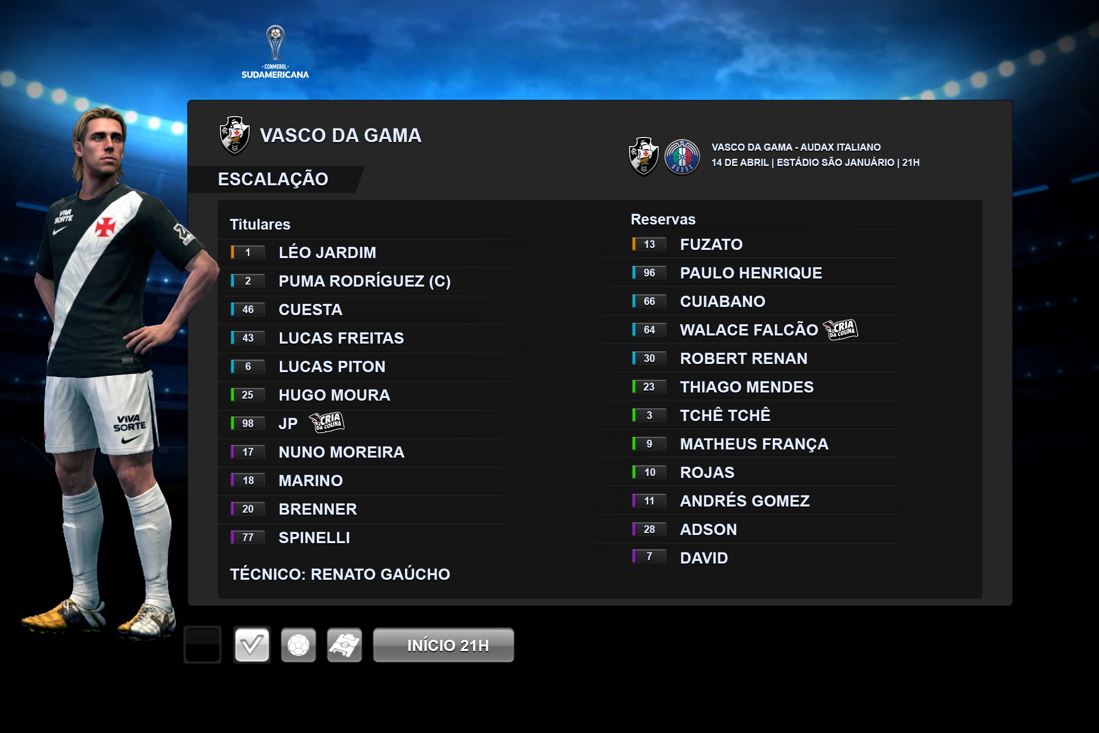 Vasco escalado para enfrentar o Audax Italiano