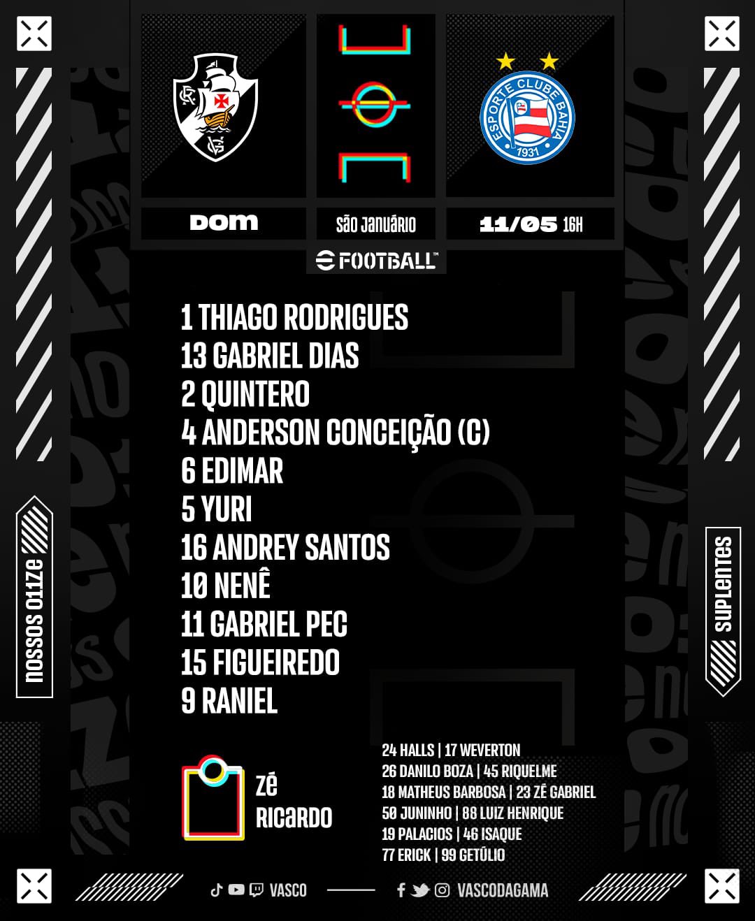 Vasco escalado para enfrentar o Bahia