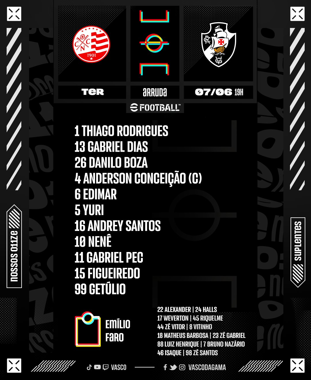 Vasco escalado para enfrentar o Náutico