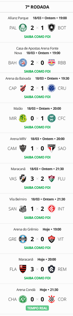 Terminada a 7ª rodada do Campeonato Brasileiro, o Vasco, que venceu o Fluminense por 3 a 2, está na 10ª colocação.