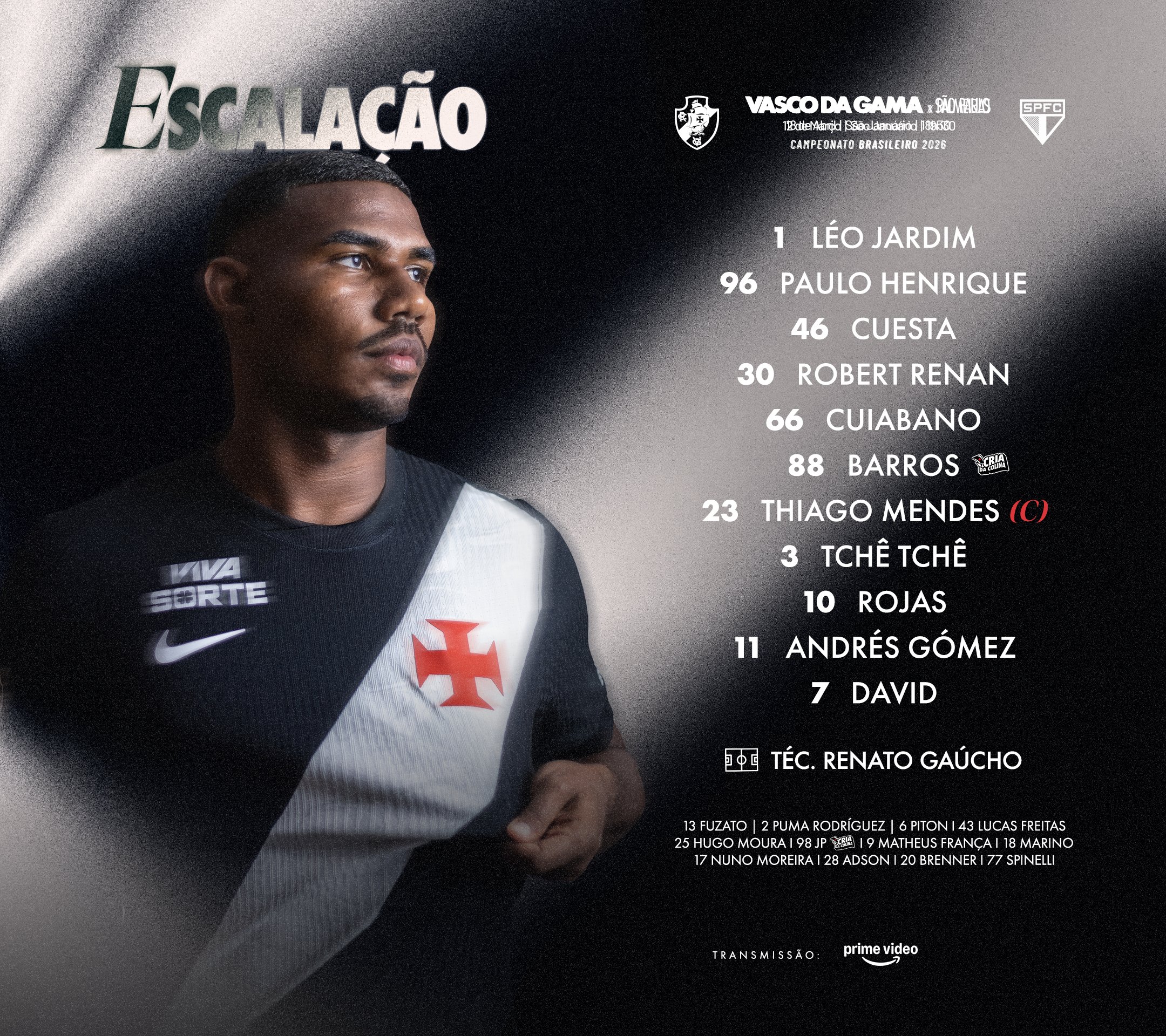 Vasco está escalado para enfrentar o São Paulo