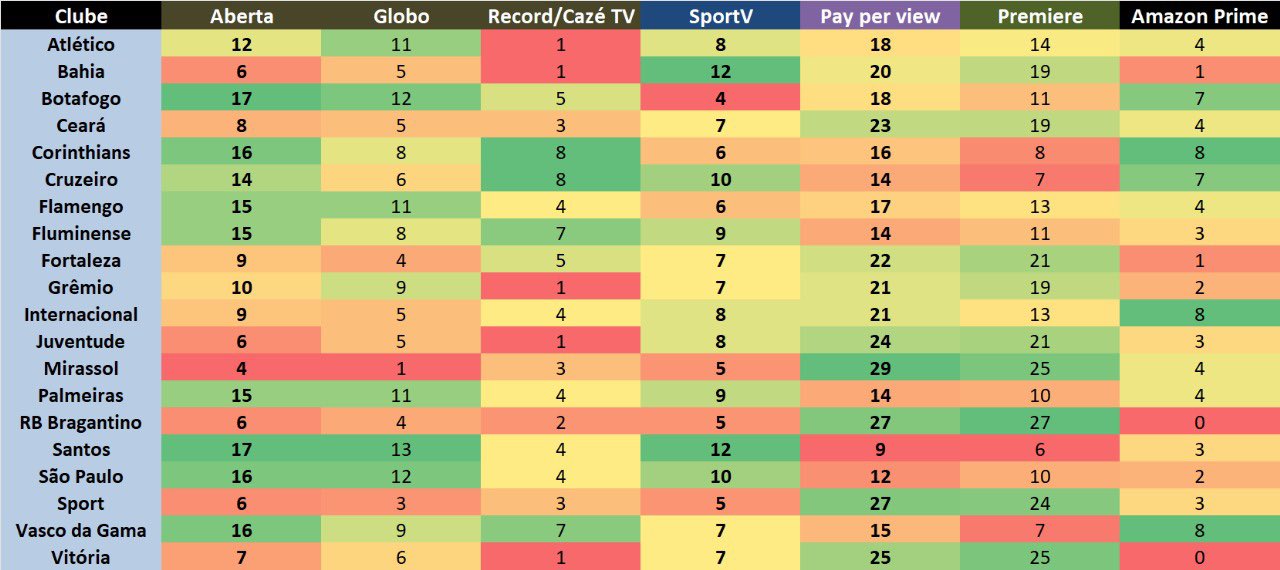 O “Tabelão” de transmissão dos times no Brasileirão.