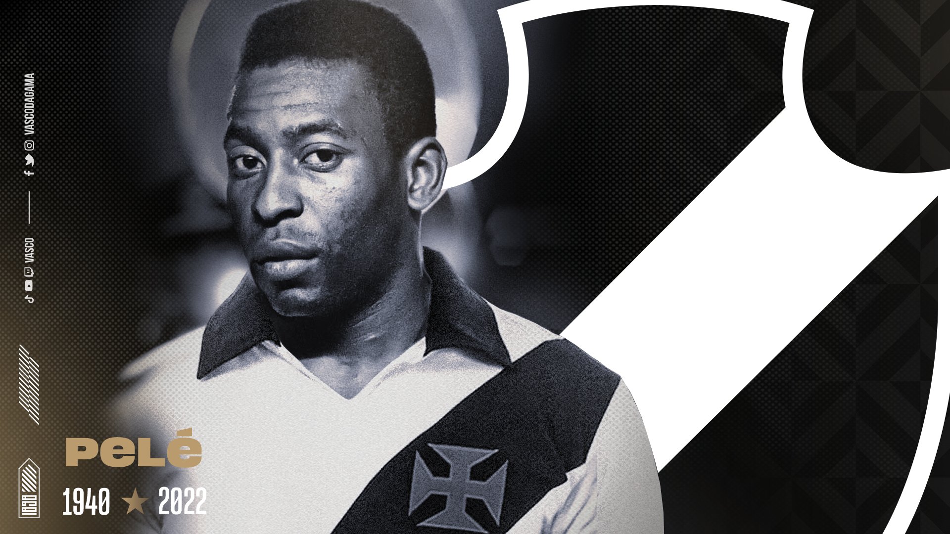 O #VascoDaGama presta todas as condolências a Edson Arantes do Nascimento, o Pelé, que nos deixou nesta quinta-feira, aos 82 anos.