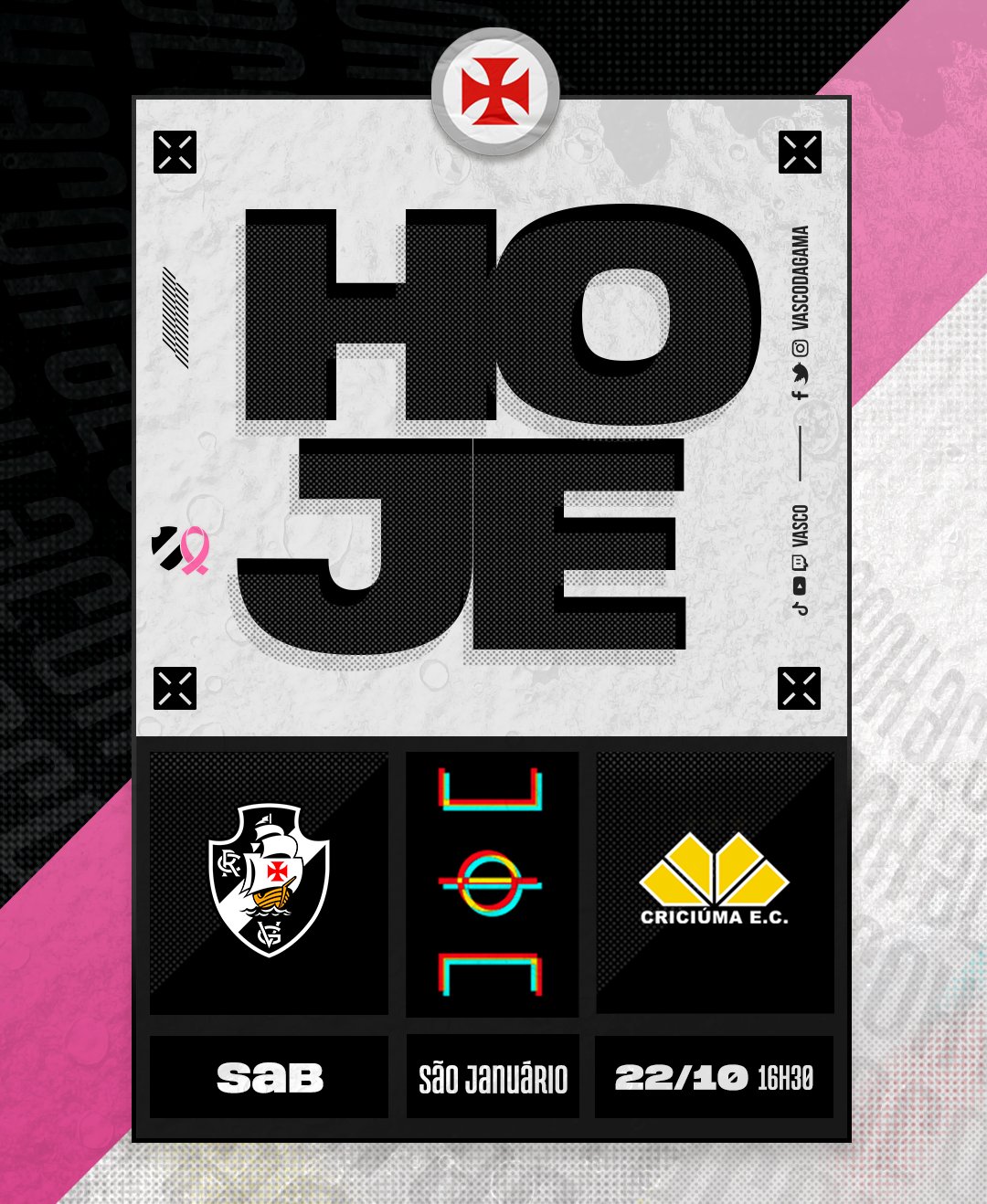 Vasco posta imagem de divulgação do jogo contra o Criciúma