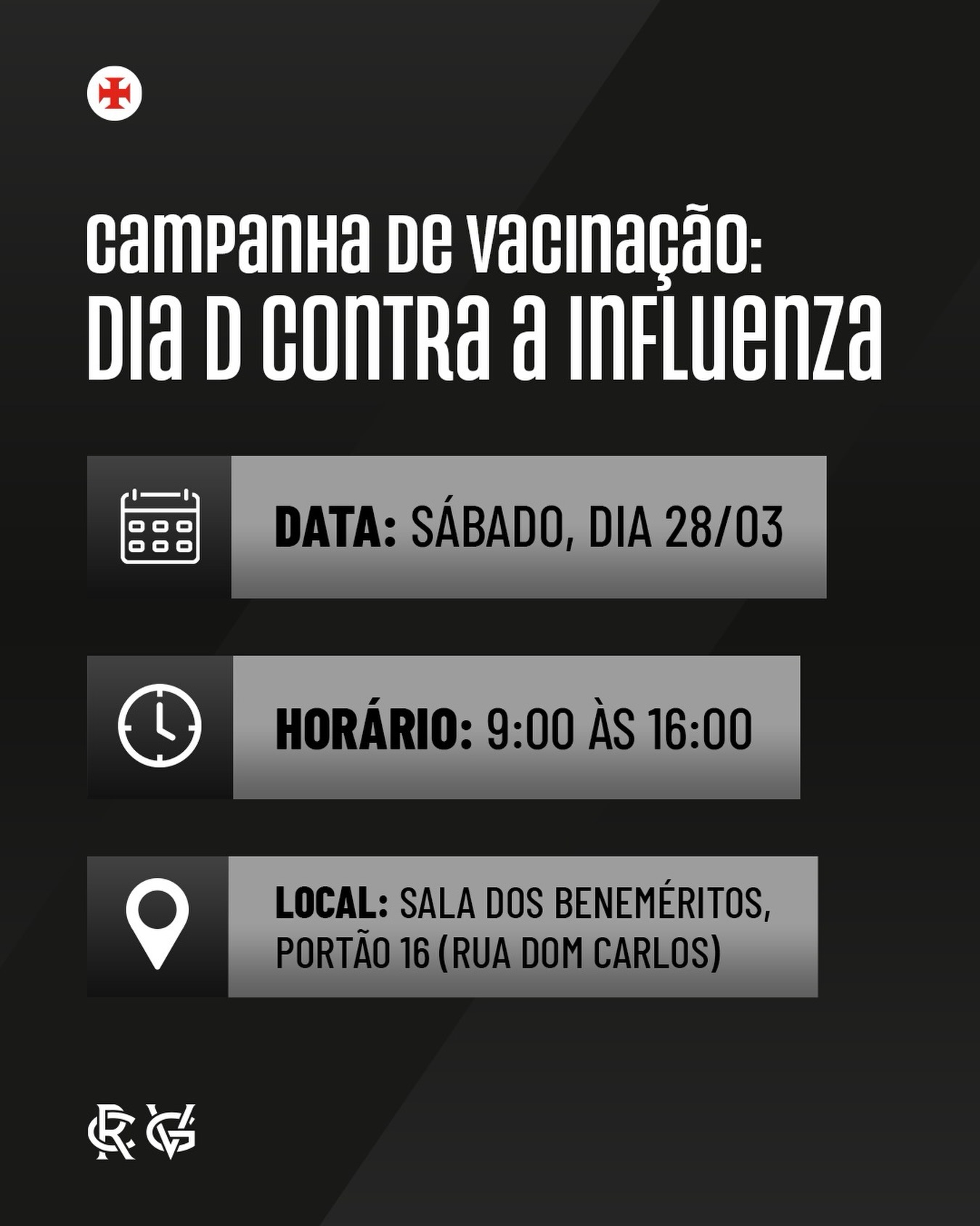Vasco recebe a campanha 'Dia D Contra a Influenza' neste sábado (28/03)