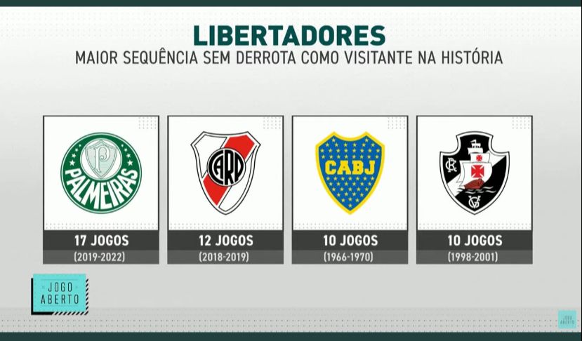 Ao lado do Boca Juniors, o Vasco detém a terceira maior sequência sem derrotas como visitante na história da Libertadores.