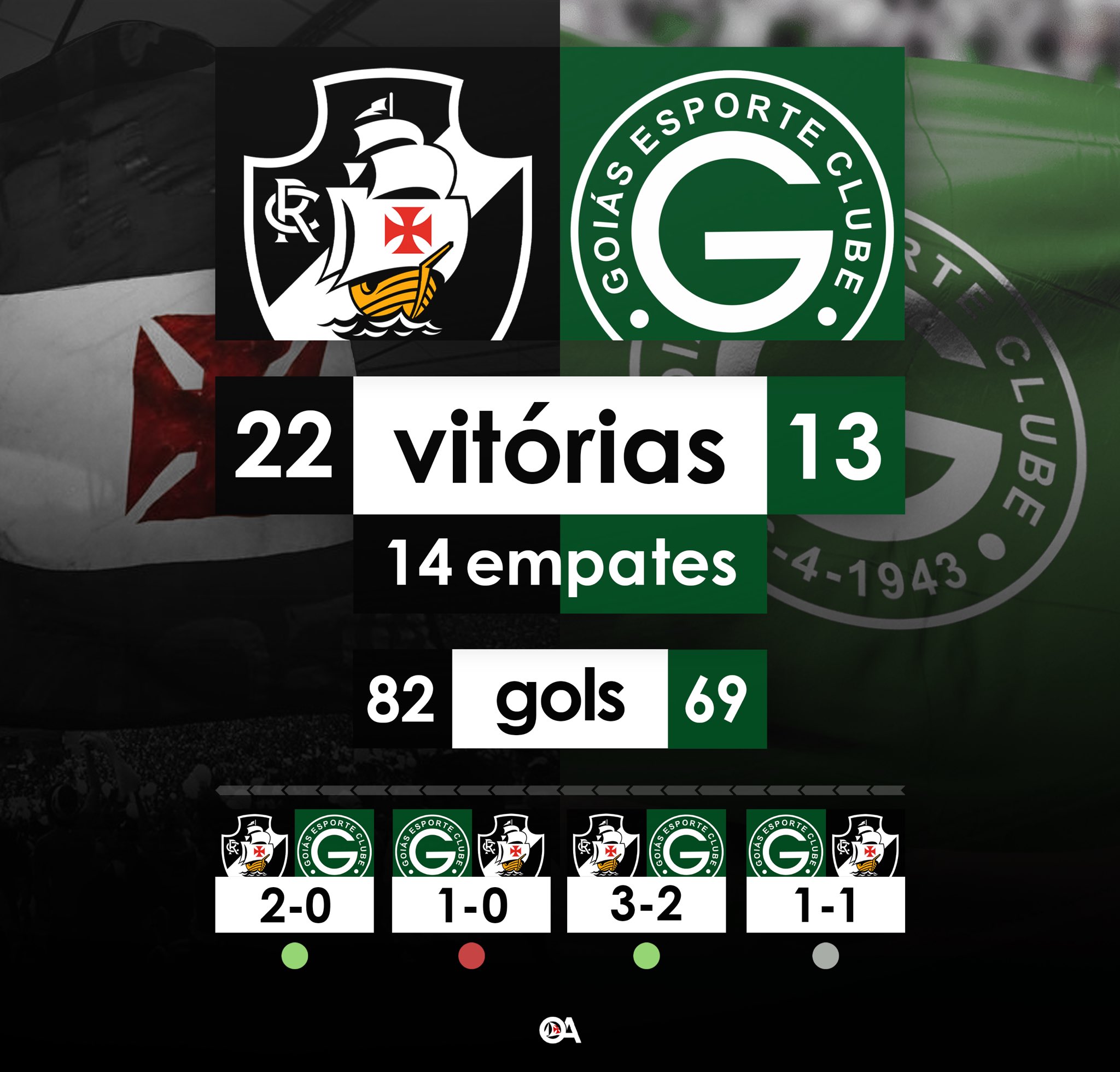 Histórico dos confrontos oficiais entre Vasco e Goiás, com vantagem do Cruzmaltino.