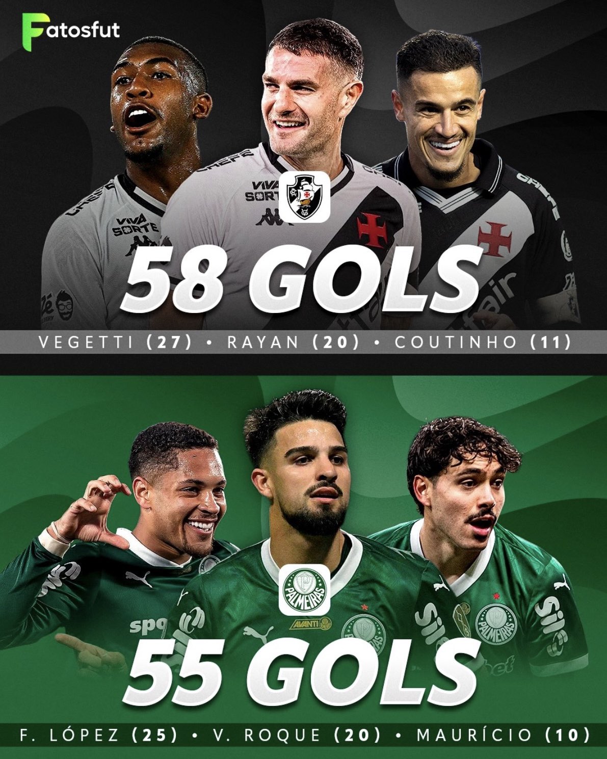 Vasco teve o trio com mais gols entre os cubes da Série A em 2025