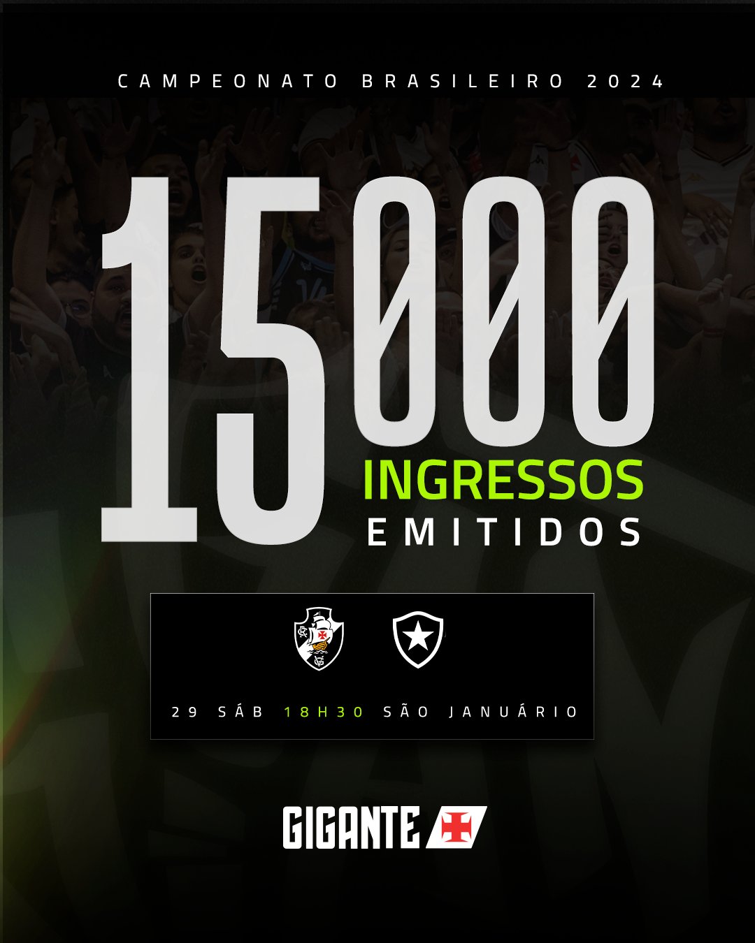 Vasco x Botafogo: Vasco divulga nova parcial do clássico