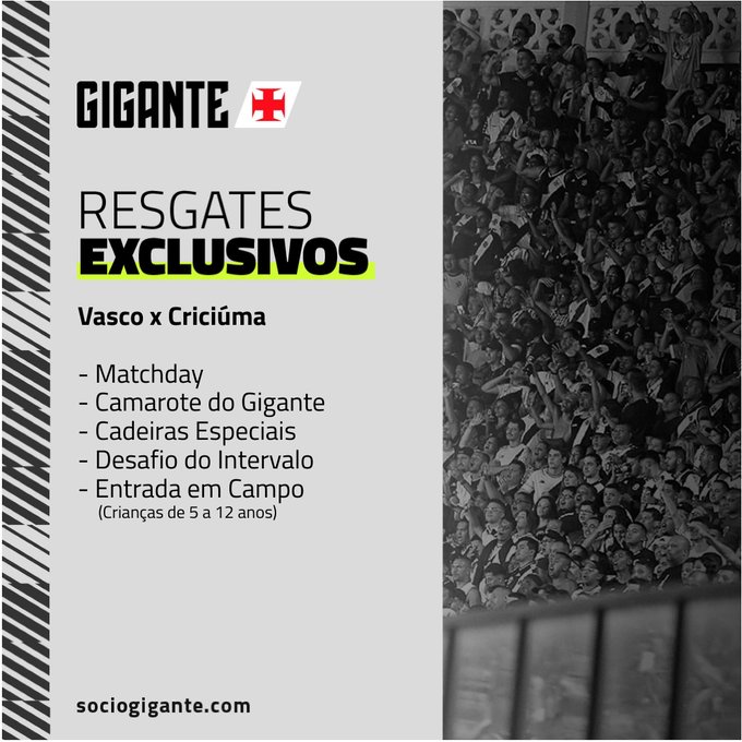 Sábado tem Vasco x Criciúma no caldeirão e hoje tem resgate exclusivo para sócios.