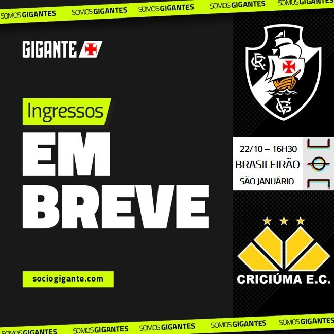 Vasco x Criciúma: Venda de ingressos inicia nesta segunda (17)
