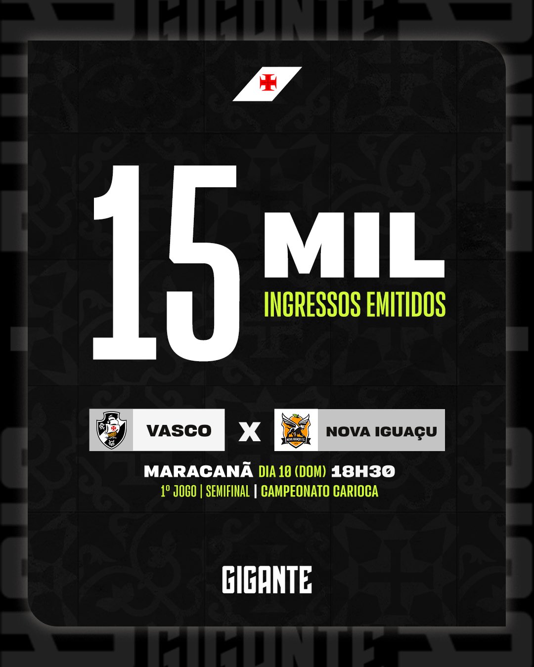 Vasco x Nova Iguaçu: 15 mil ingressos emitidos