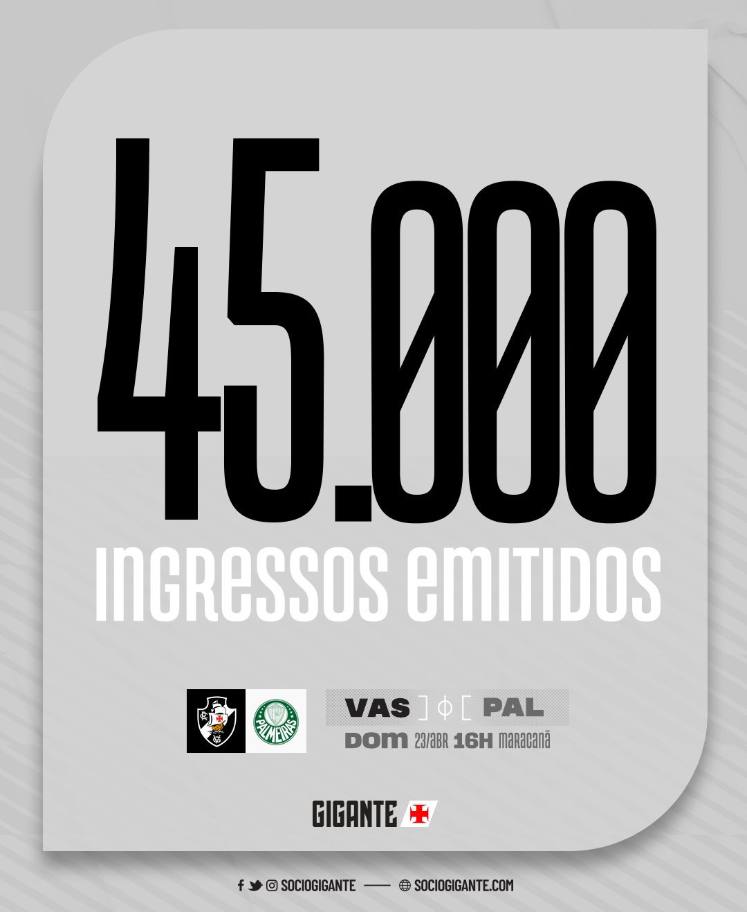 Vasco x Palmeiras: 45 mil ingressos emitidos