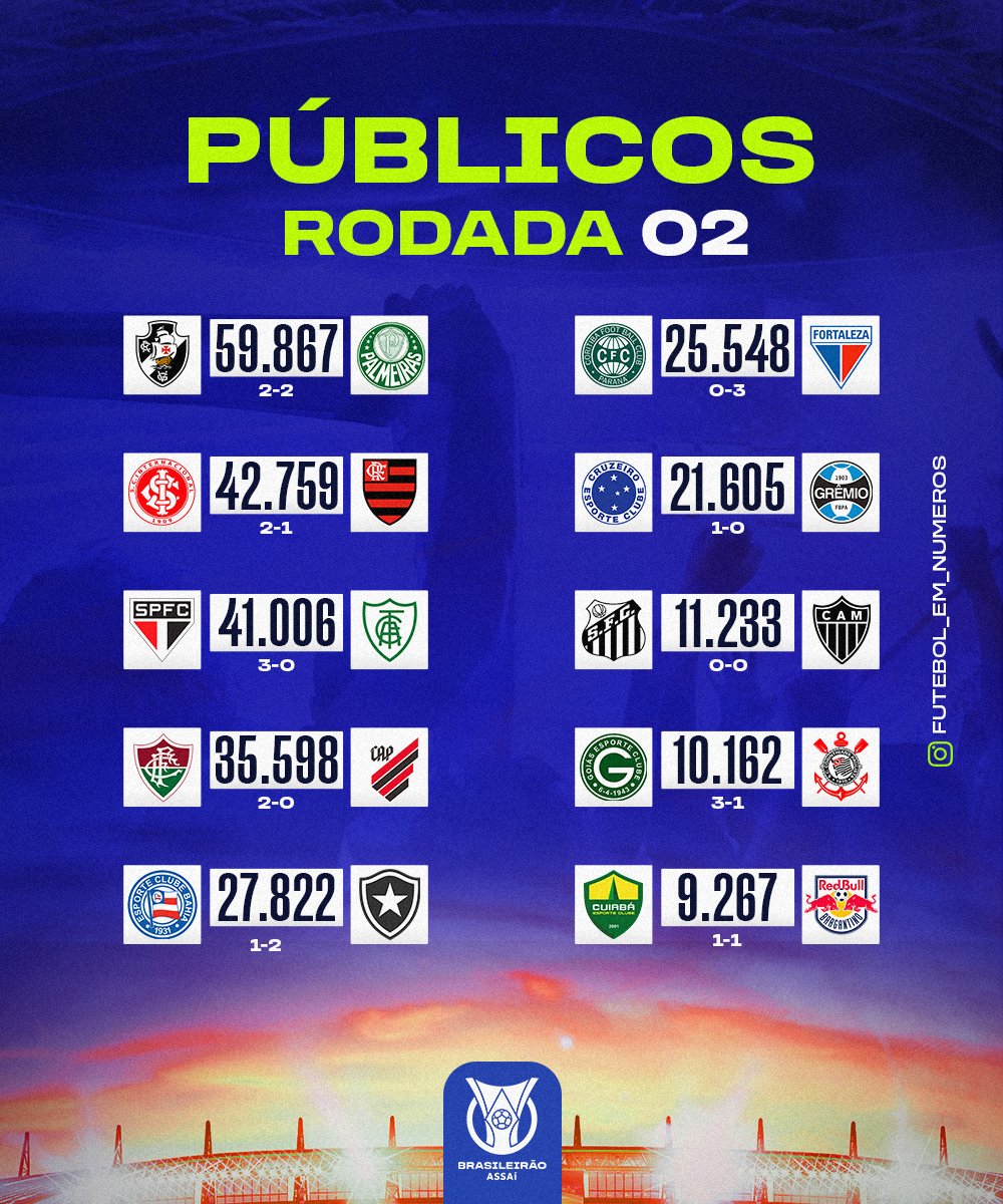 A segunda rodada do #CampeonatoDoBrasileiro teve mais um show dos torcedores por todo o país. Destaque para o @maracana com casa cheia para acompanhar @VascodaGama e @Palmeiras!