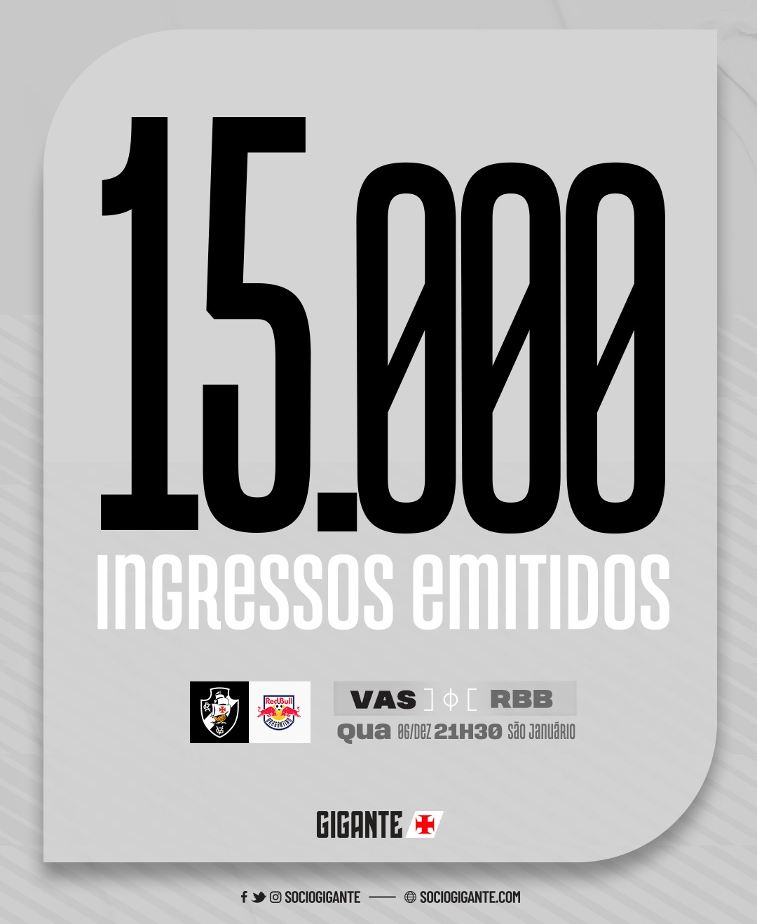 Vasco x RB Bragantino: 15 mil ingressos emitidos