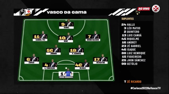 VascoTV mostra escalação do Vasco para enfrentar o Fluminense