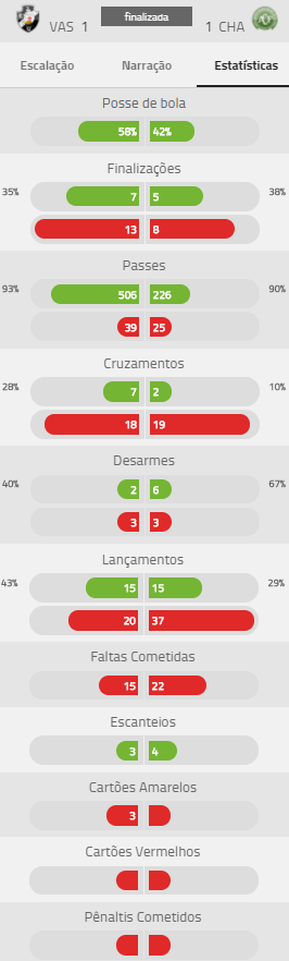 Veja as estatísticas de Vasco 1 x 1 Chapecoense