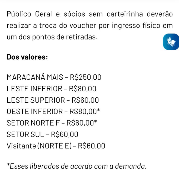 Valores dos ingressos para Vasco x Cruzeiro, no Maracanã.