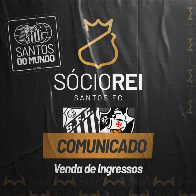 Devido à instabilidade no site do programa Sócio Rei, a venda de ingressos para a partida entre Santos FC e Vasco, pelo Campeonato Brasileiro, prevista para esta terça (26), será adiada, ainda sem novo horário para retomada da venda.