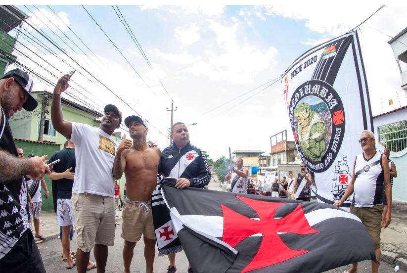 Yuri Lara, novo reforço do Vasco, foi surpreendido neste domingo, na porta da casa de seus pais, onde morou na infância, na Pavuna, com uma festa de boas-vindas de vascaínos da região. As fotos são de Thiago Lara #gevas https://twitter.com/ge_vasco/status/1472492661701447680