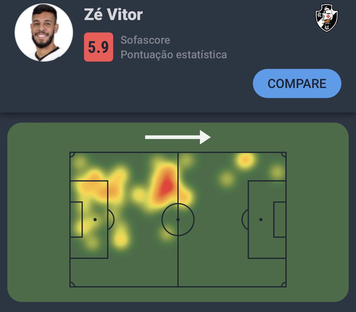 Zé Vitor teve a menor Nota Sofascore de Vasco 0-2 Athletico.